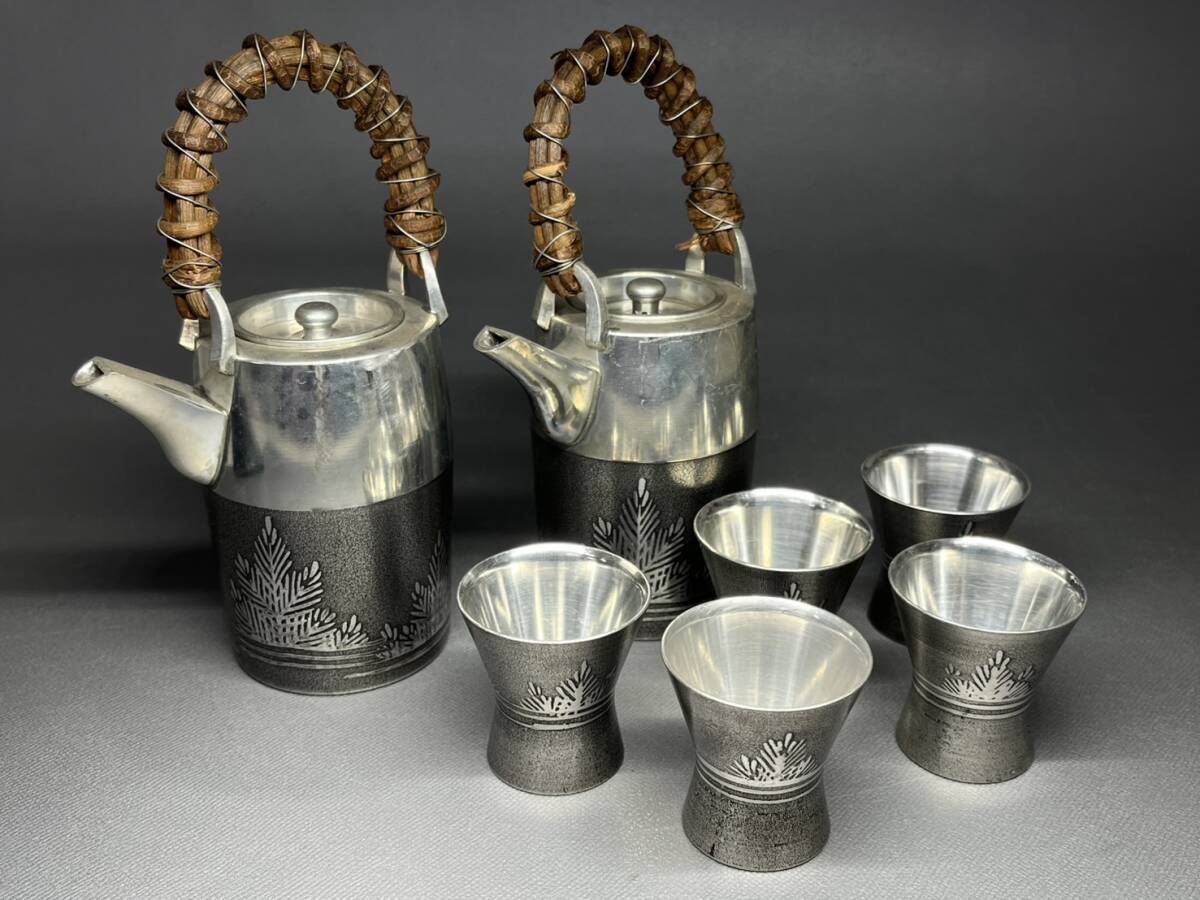 - 本錫 錫半 酒器揃い 重768.0g 酒盃 猪口 酒杯 おちょこ ぐい呑 ちろり 徳利 酒注 酒道具 金属工芸 骨董 置物 飾物 古美術