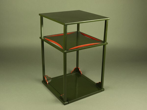 - 【宇】3502 青漆 糸巻棚 組立式 紙箱 茶道具