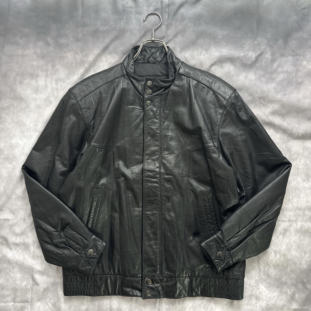 - 韓国古着 レザーブルゾン レザージャケット 革ジャン 本革 牛革 黒 y2k ジップ オールド ブラック メンズ