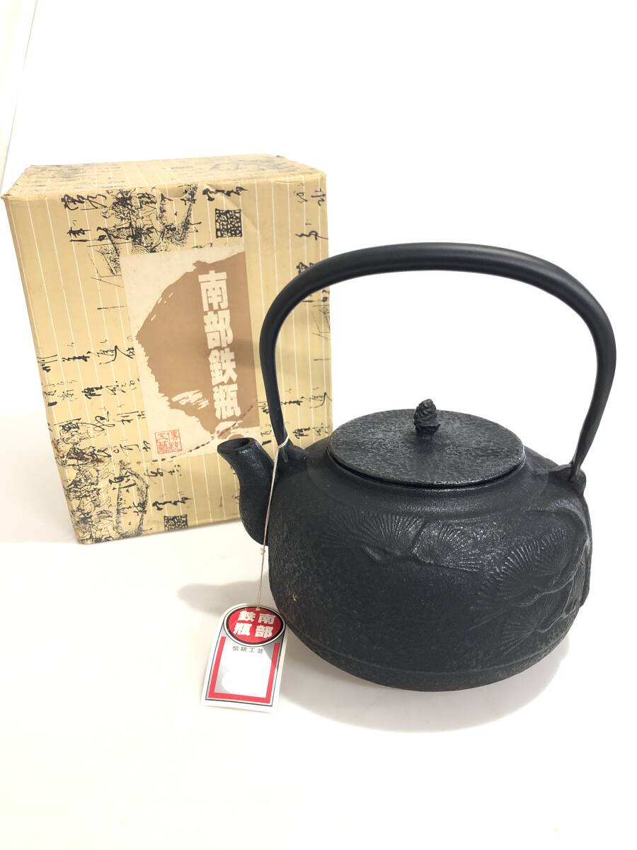 - HB4937 未使用 南部鉄器 鍋元 鉄瓶 万代屋 松 2.0リットル 急須 茶道具
