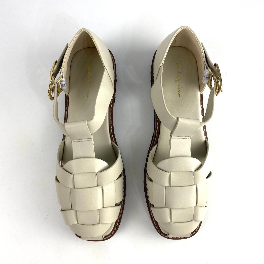 - 新品 Au BANNISTER グルカサンダル アイボリー 35 合成皮革 厚底ソール フラット レディース 高級 トレンドデザイン 安定感 バックル付き