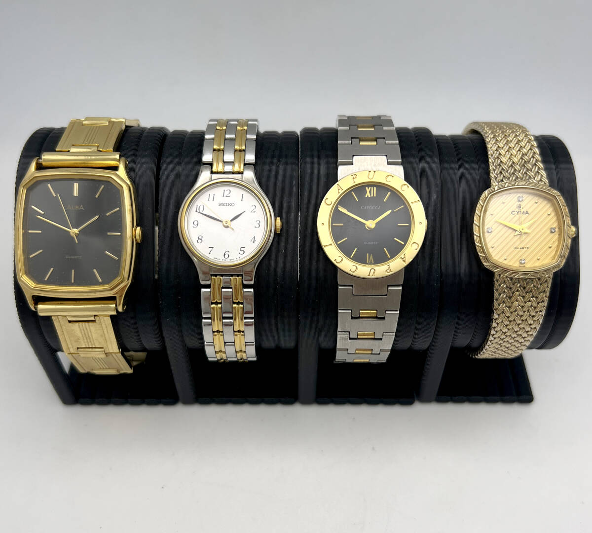 - 腕時計 まとめ4点セット SEIKO セイコー ALBA アルバ CYMA シーマ CAPUCCI カプッチ クォーツ QZ SS レディース 稼働 新品電池