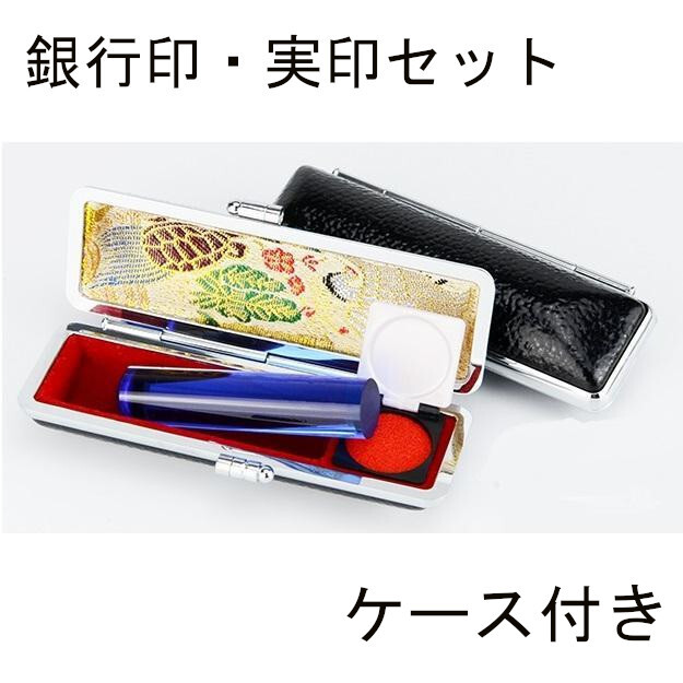 > ブルー 個人用 印鑑 銀行印 実印 2本セット アタリ 印鑑ケース付き 12mm 13.5mm 15mm 16.5mm サイズ選べる