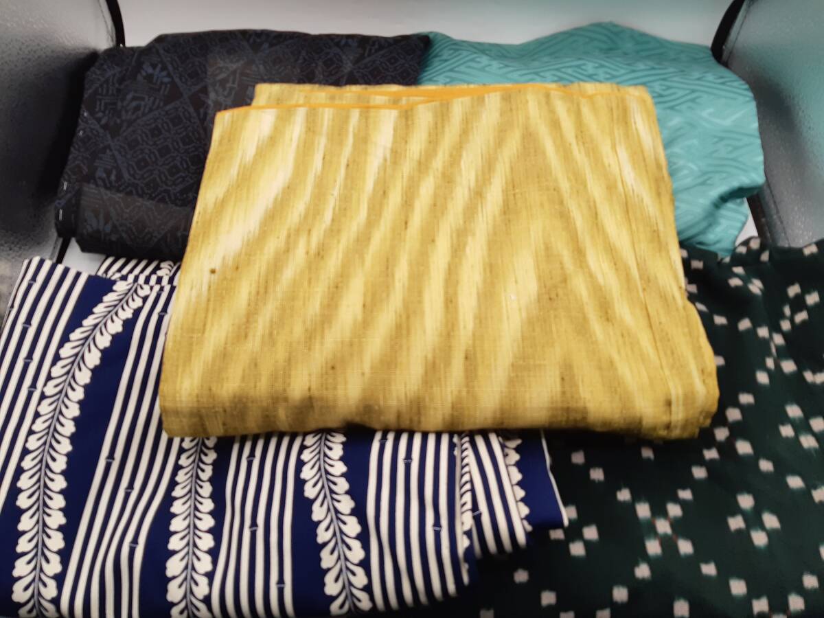 > 【管D】(4.0㎏まとめ売り)美品 着物 からし色 竹 コバルトブルー リメイク素材 古着 中古品