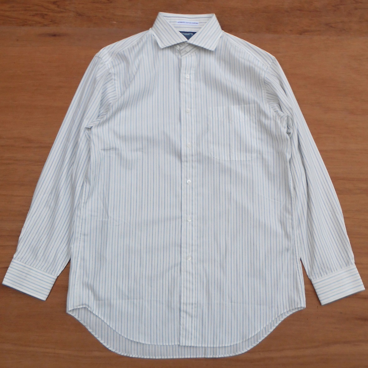 > 未使用 SCHIATTI スキャッティ 長袖 ドレスシャツ M ストライプ織柄 カッタウェイカラー 白x青x灰 ホワイトxブルーxグレー 日本製 ノータイ