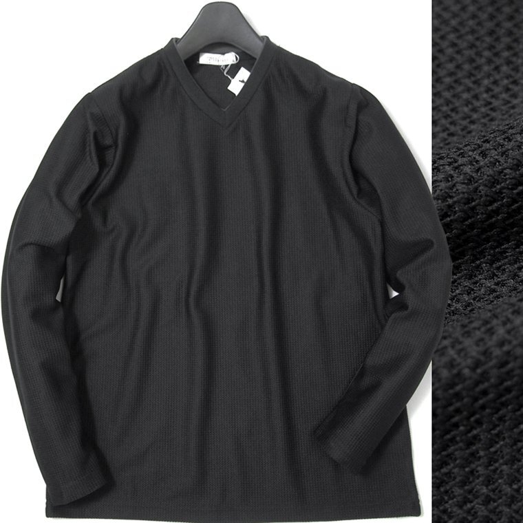 - 新品 インターメッツォ ハニカムメッシュ Vネック カットソー L 黒 【I53892】 STUDIO by INTERMEZZO メンズ Tシャツ ロンT
