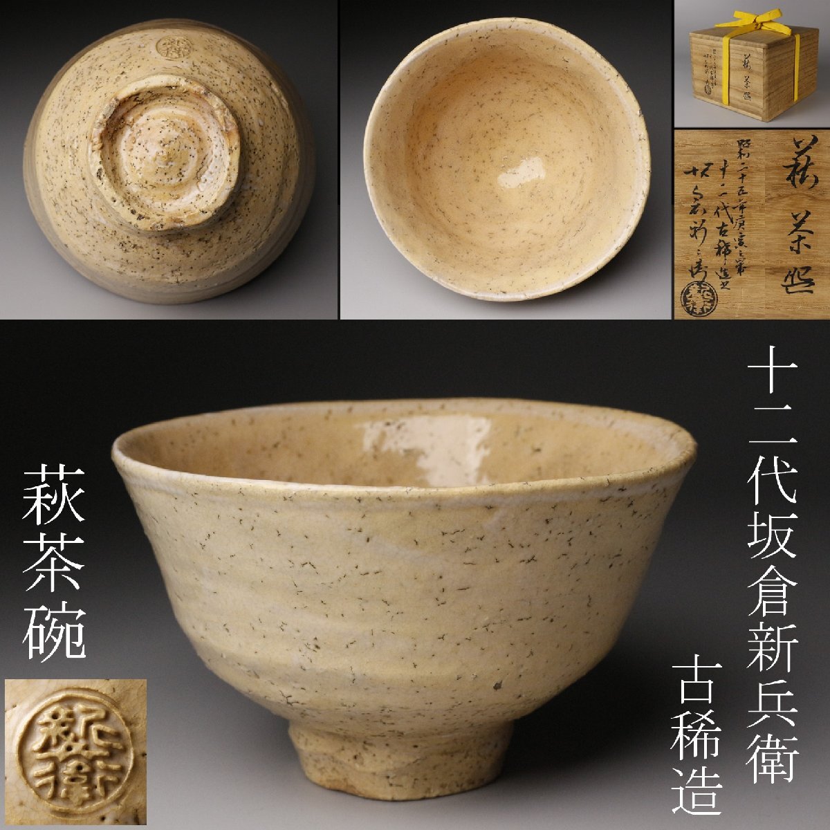 - 【LIG】十二代 坂倉新兵衛 古稀造 萩茶碗 茶道具 昭和25年 共箱 共箱 ⑦ [-EO]25.8