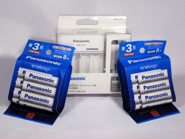 - ■ ニッケル水素電池用 USB入力式充電器と、単三型8本を2個 (BQ-CC61 & BK-3MCDK/8H)