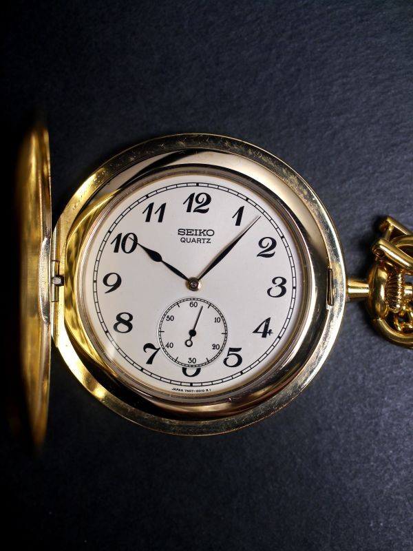 - セイコー SEIKO クォーツ スモールセコンド 贈 内閣総理大臣 7N07-001A 懐中時計 ab839 稼働品