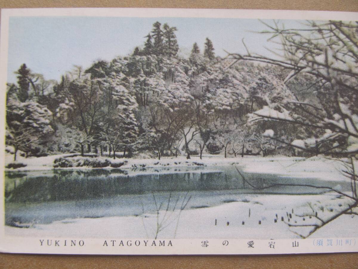 - 福島 須賀川町【雪の愛宕山】絵葉書 *昭和30年代頃*