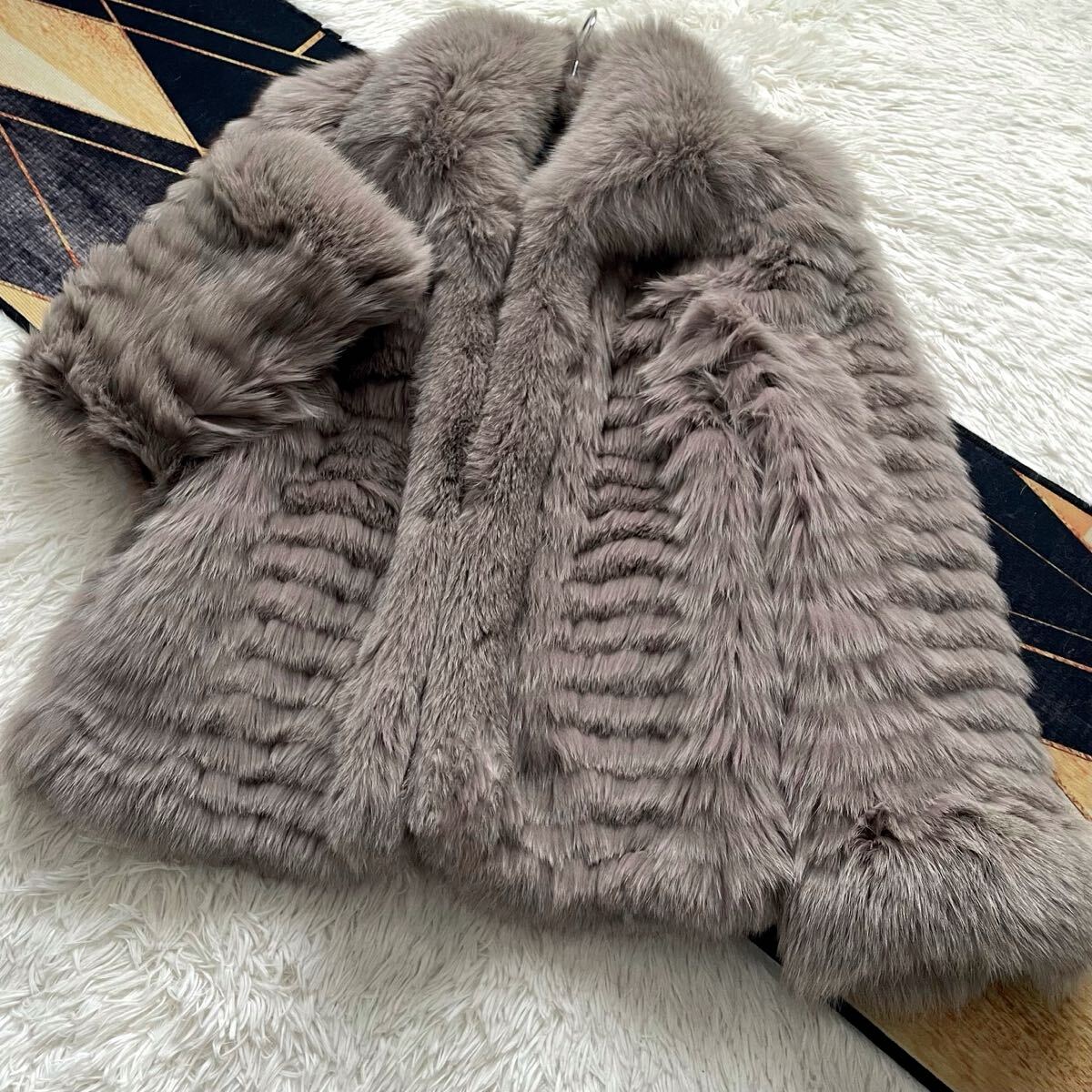 - さらさら◎/着丈61 染め/カラー フォックス/FOX グレーパープル ショート ファーコート リアルファー 毛皮 XL 毛並み◎ なめし柔らか◎ 狐
