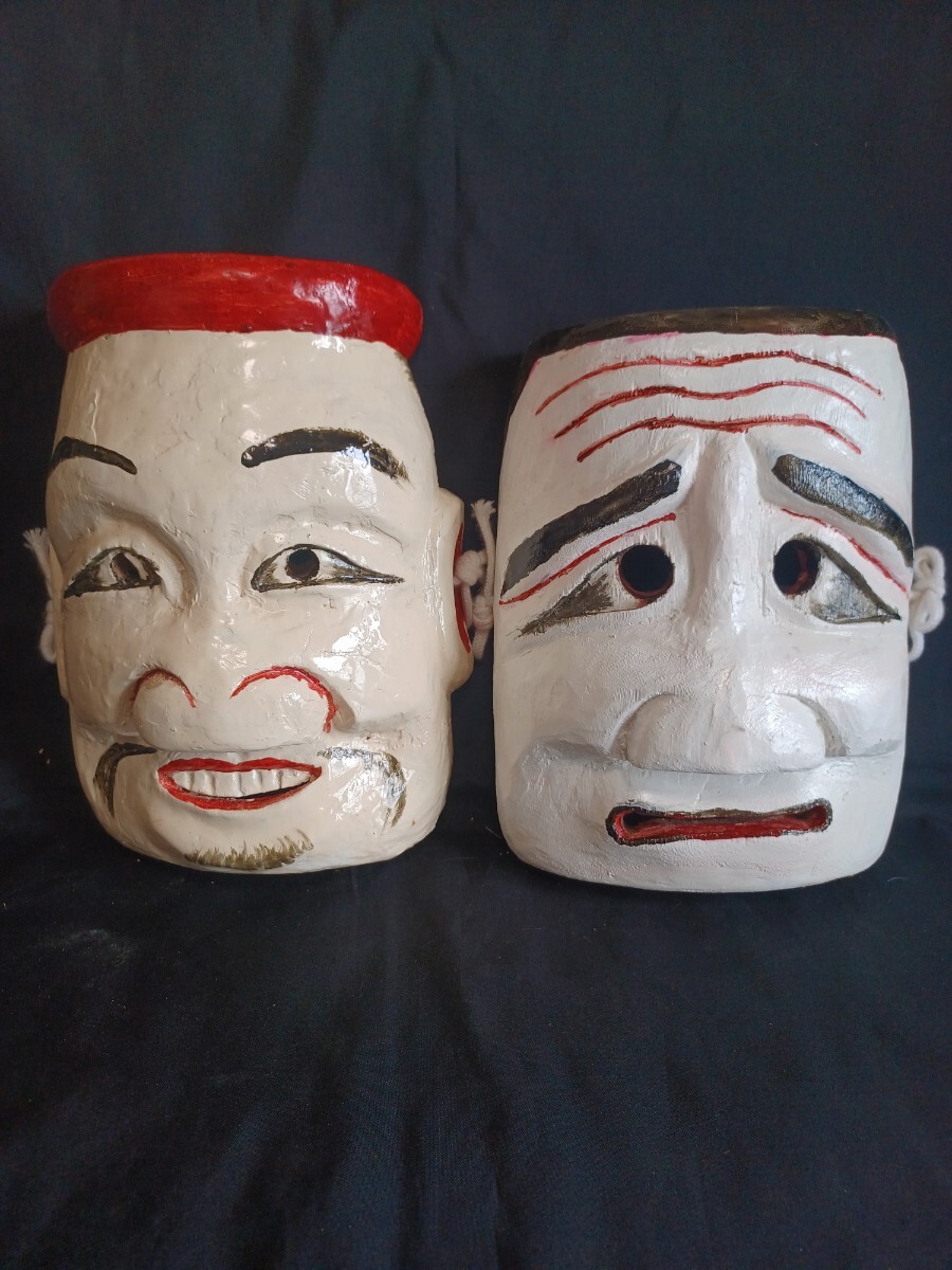 - No.13 コレクター放出品 大国主命 ひょうきん面 お面 魔除け 木彫り 木彫り面 能面 神楽 細密彫刻 木工芸 箱なし 和風インテリア