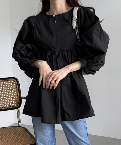 - 「andme」 「alma design」7分袖チュニック M ブラック レディース