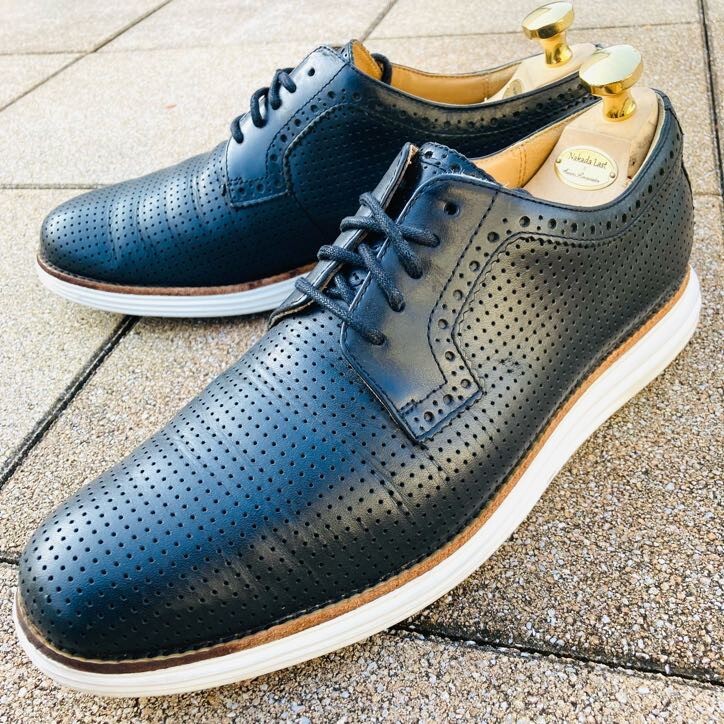 > ★即決★ コールハーン COLEHAAN 10 27.5cm レザーシューズ スニーカー ルナグランド ブラック 黒 BK パンチングレザー メンズ 軽量