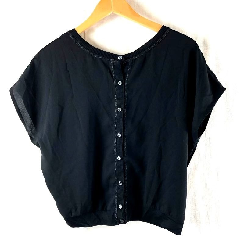 - インディヴィ INDIVI カーディガン 半袖 ラメ ボタン 黒 38サイズ 2025090100131
