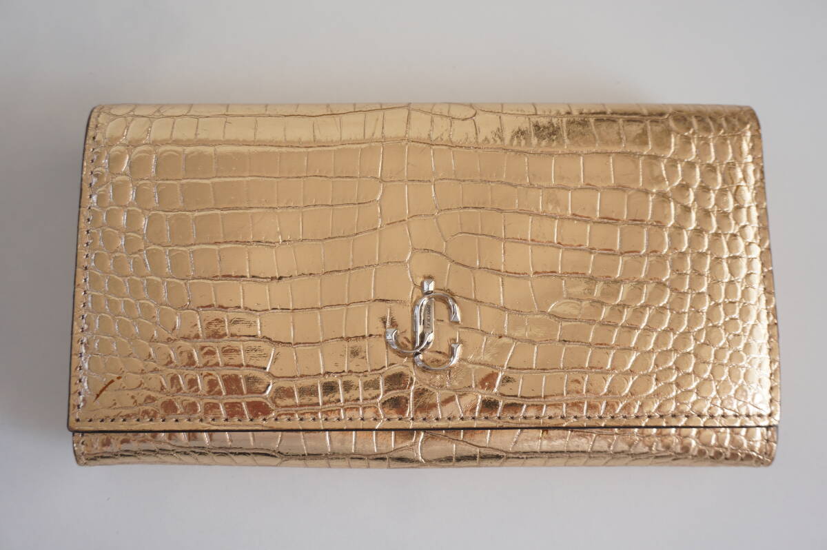 - JIMMY CHOO ジミーチュウ*マルティナ クロコダイル型押しレザー 二つ折り 長財布 ウォレット メタリック ゴールド系