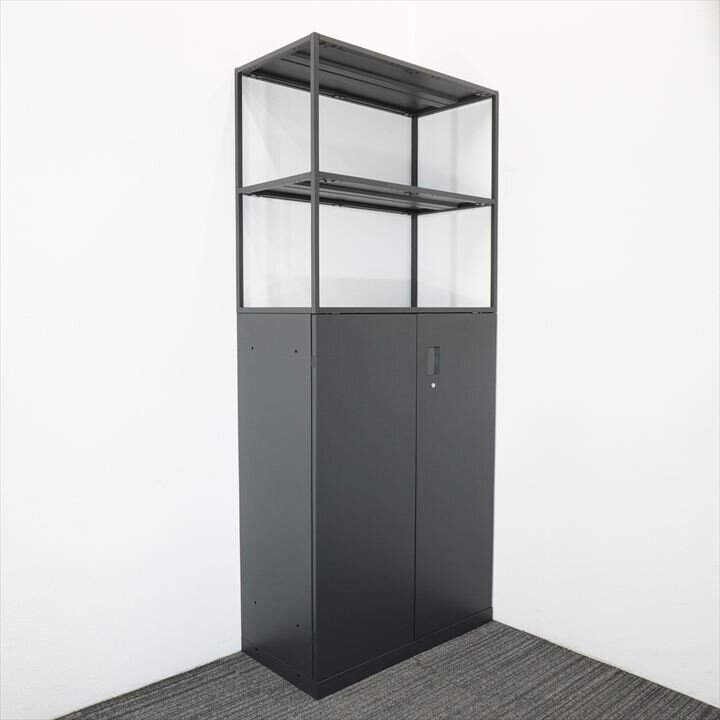 - イトーキ エス 両開き書庫+ ノットワーク システム収納上フレーム H2100 ブラック 特価品 中古