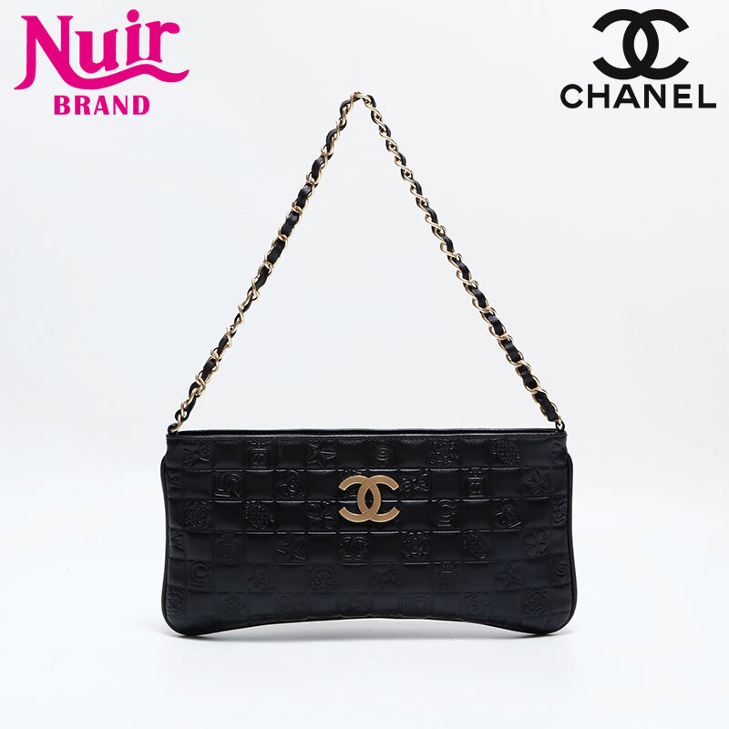 > シャネル CHANEL ショルダーバッグ 8番台 2003-2004 ラムスキン アイコンモチーフ ブラック