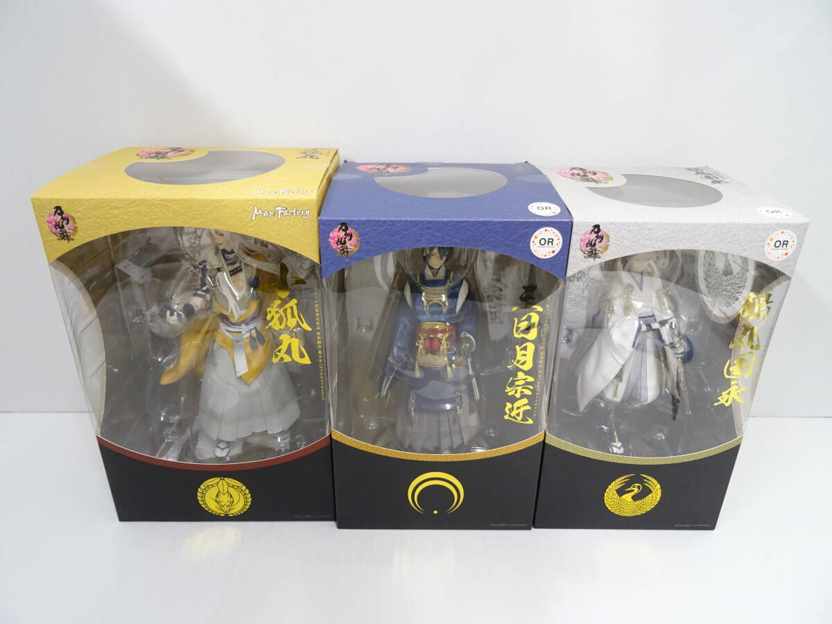 > 【1点パーツ破損有】HO-022◆刀剣乱舞 フィギュア 3点まとめて 小狐丸/三日月宗近/鶴丸国永 MaxFactory/オランジュ・ルージュ 中古品