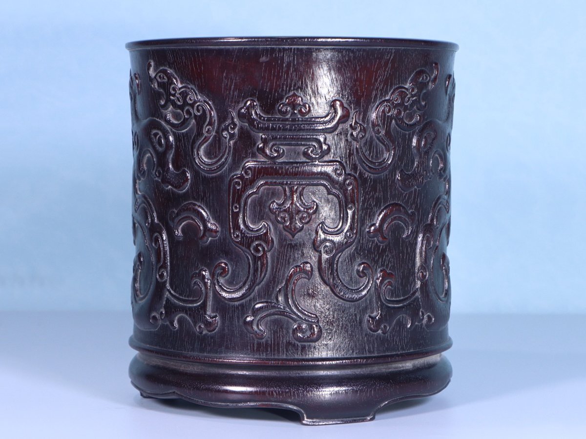 - 【安】清時代 珍木紫檀 交龍紋文房筆筒 細密毛彫 書道具 文房具 中国古美術 時代物 古董品 295