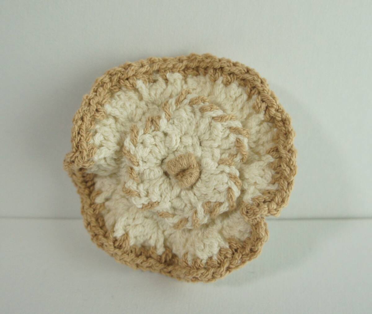 - ♪ ハンドメイド お花 ブローチ 手編み かぎ針編み 綿ブークレー