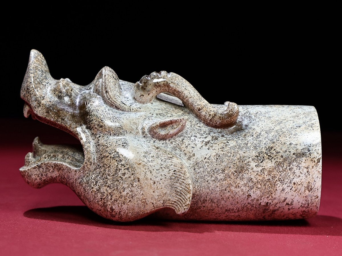 - 【安】漢時代 和田玉 高古玉 龍首紋彫り件 極細工 古置物 古擺件 中国古美術 古美味 時代物 古董品 332