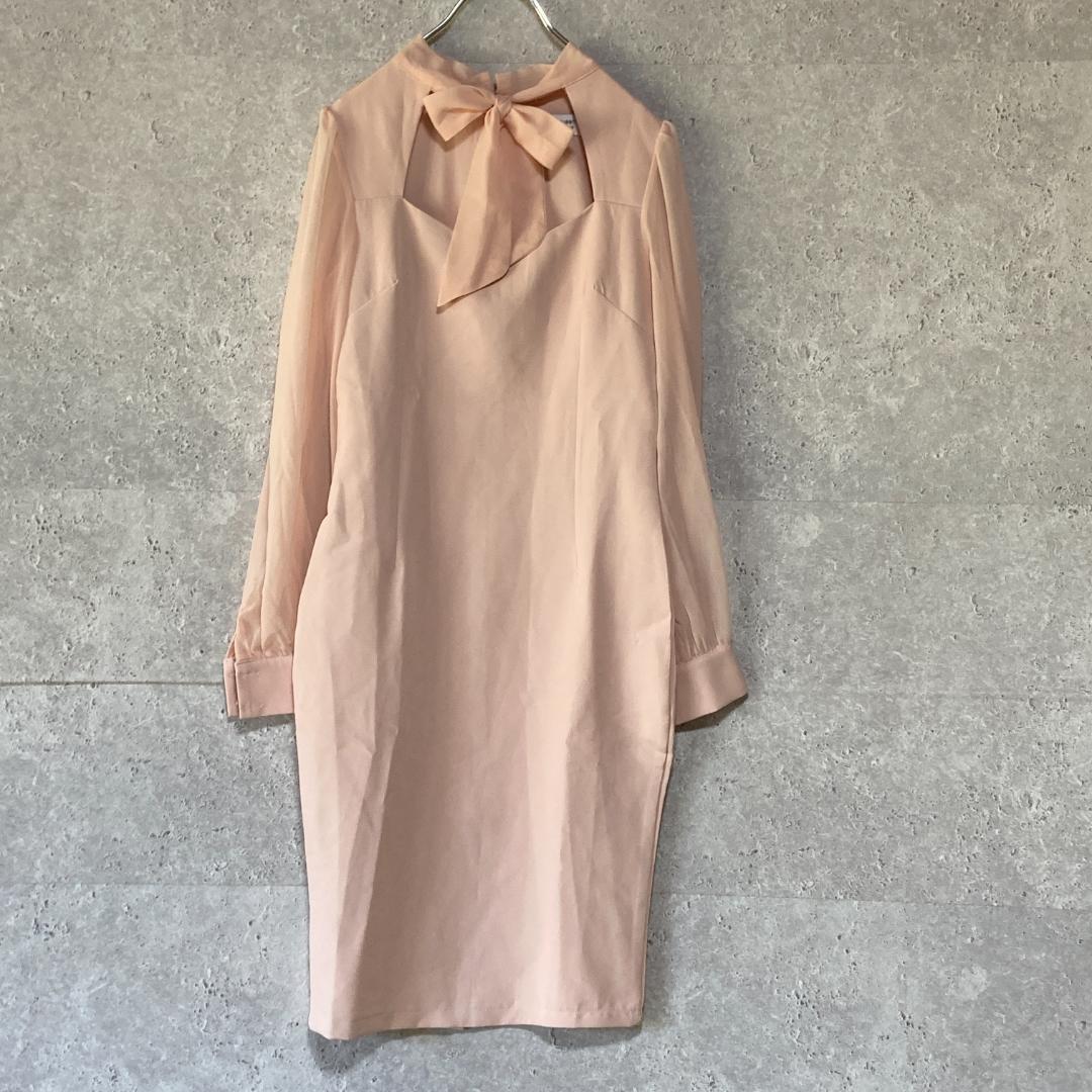 - han queen(S)ひざ丈タイトワンピース*首元リボン*長袖*バックジッパー