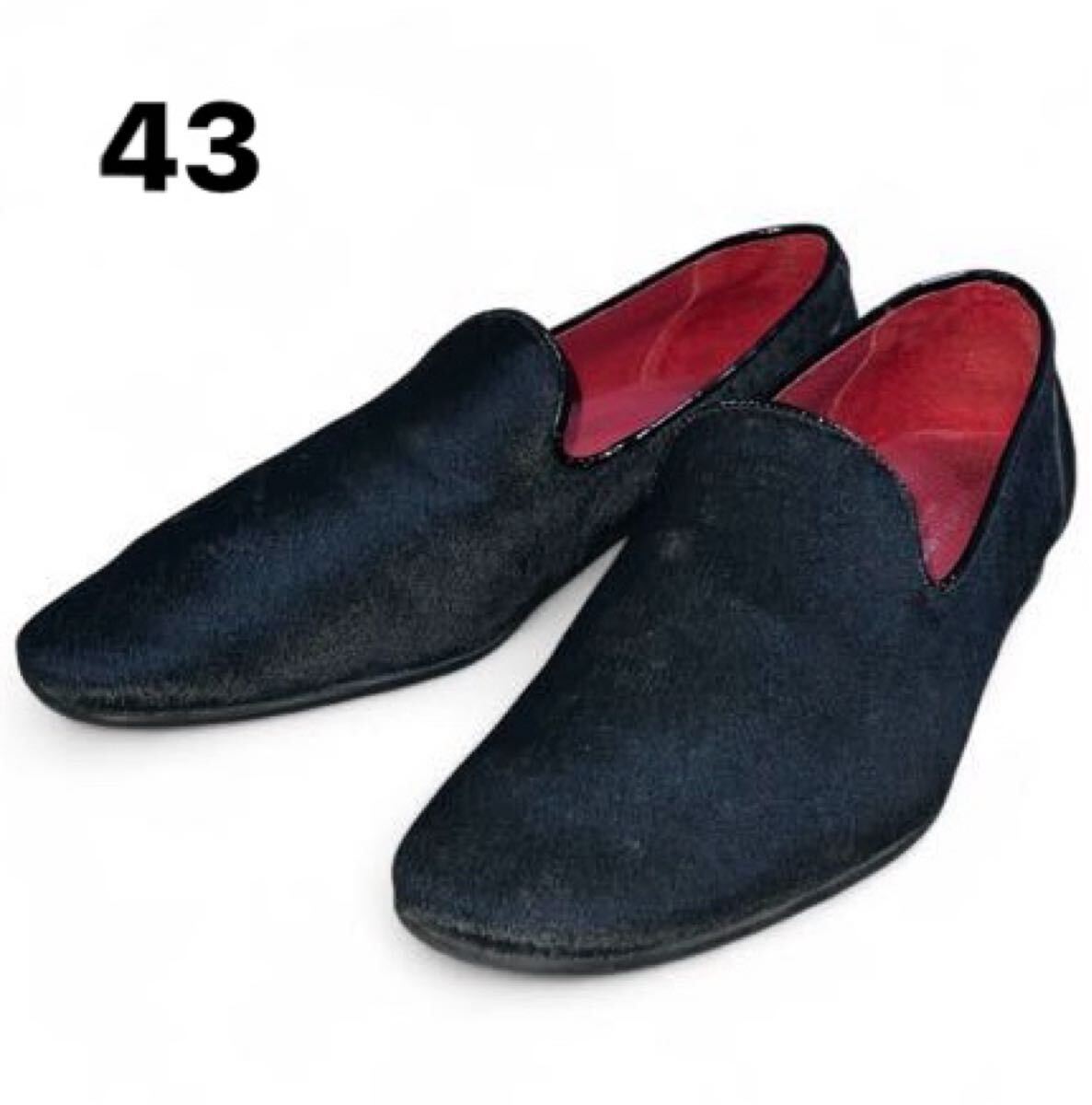- 超美品 サイズ43 around the shoes 27.5cm ハラコ オペラシューズ ローファー ドレスシューズ ビジネスシューズ 革靴 ブラック