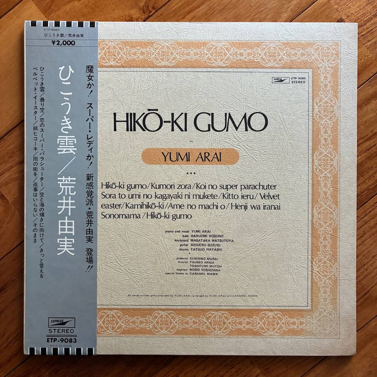 > 《オリジナル盤・良品!》荒井由実『ひこうき雲』LP〜細野晴臣/松任谷正隆/キャラメルママ/ティンパン/ベルベット・イースター/帯付/にほ