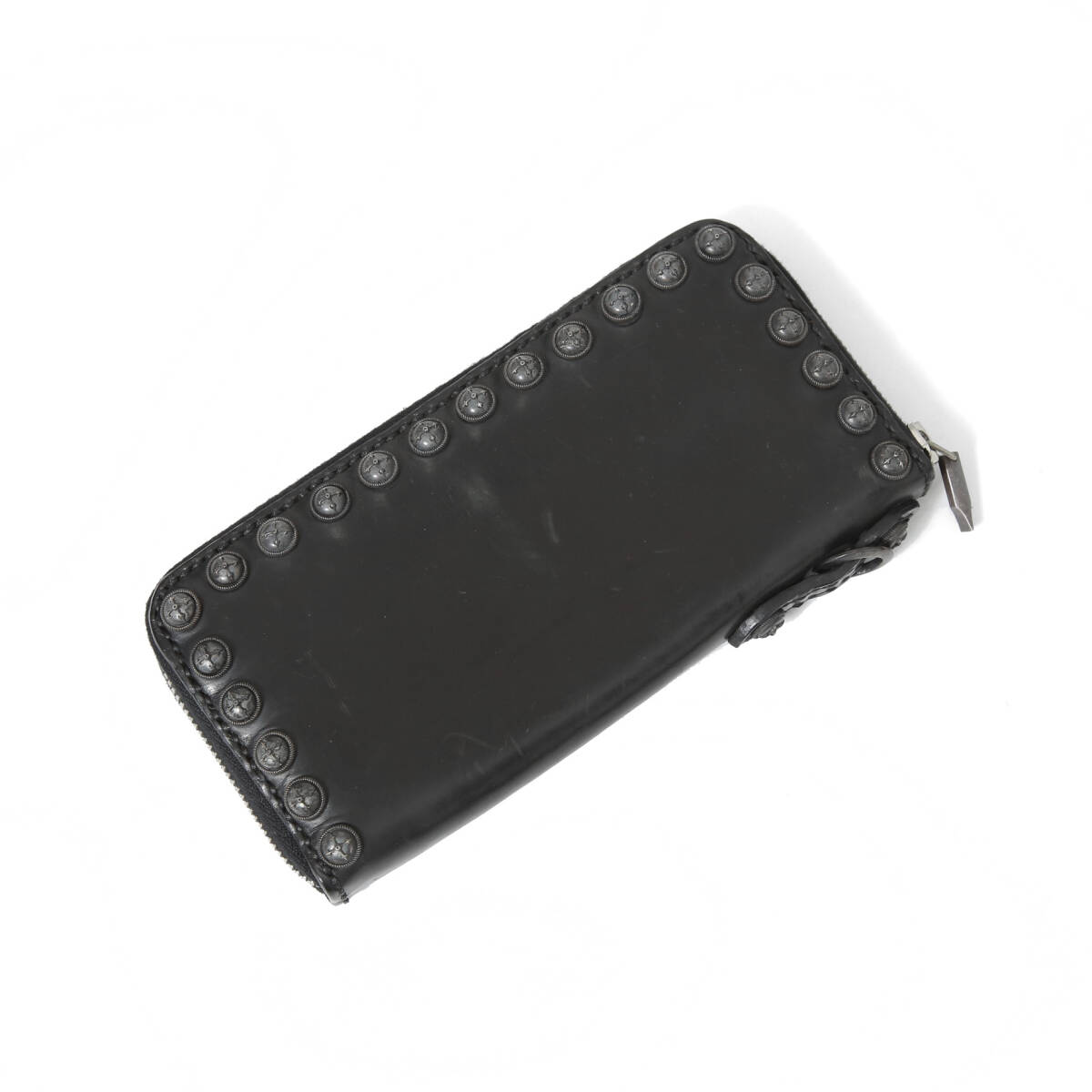 > 一点物 新品 イサムカタヤマ バックラッシュTHELINE / GUIDI カーフ / シルバー スタッズ ラウンドジップ ウォレット / BLACK