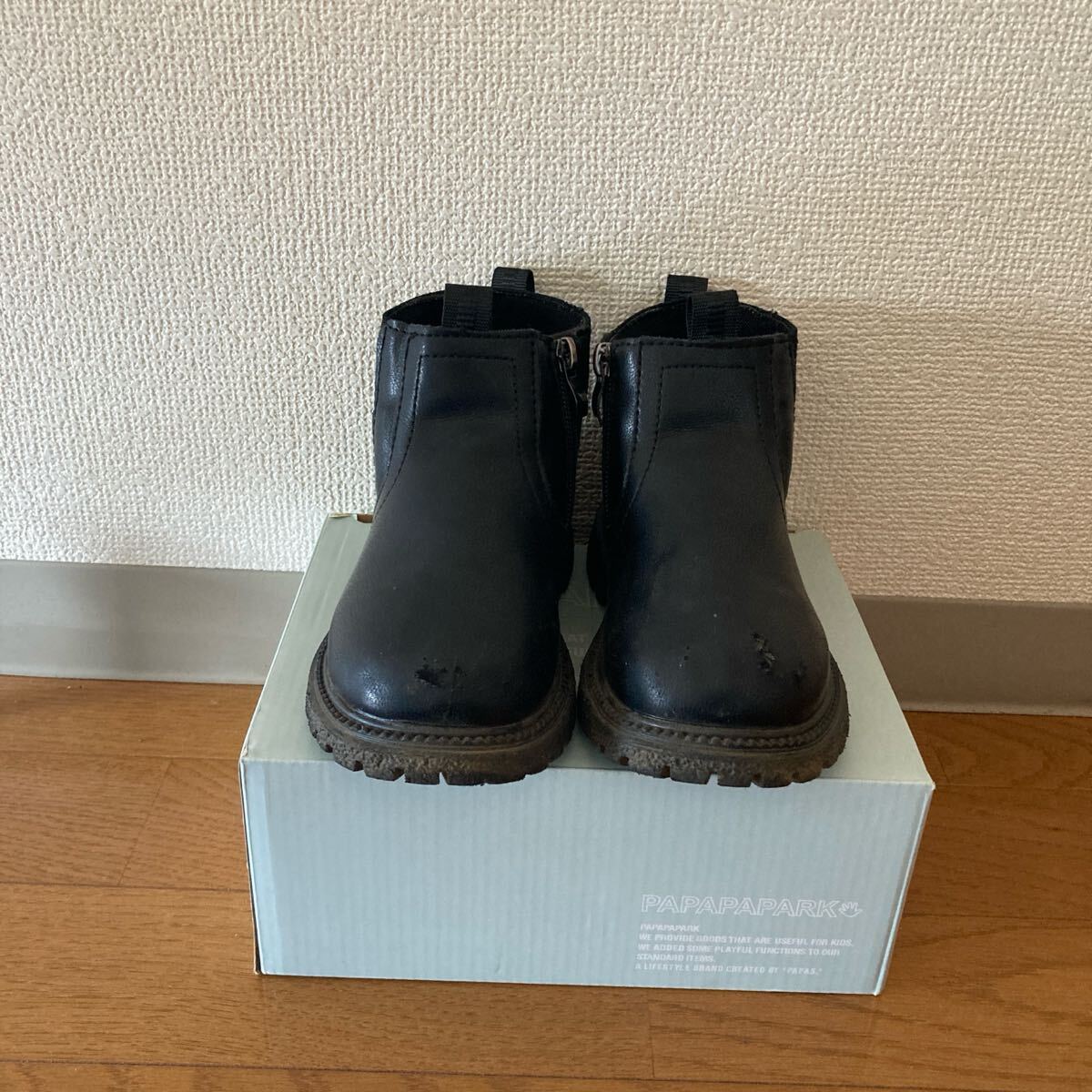 - ブラック キッズブーツ ジッパー付き サイドゴア 18cm
