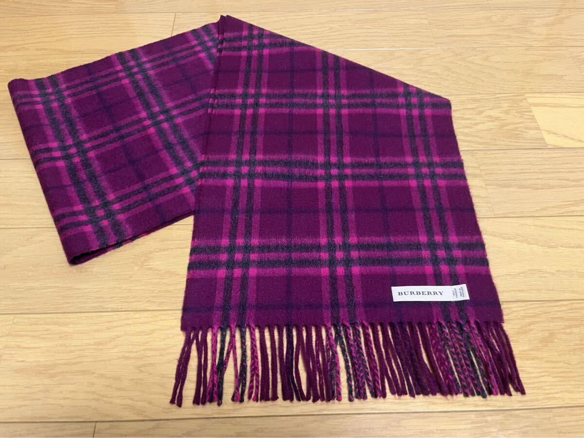 > BURBERRY バーバリー マフラー カシミア100% 未使用に近い 赤紫系 ヴィンテージチェック 送料無料!!!