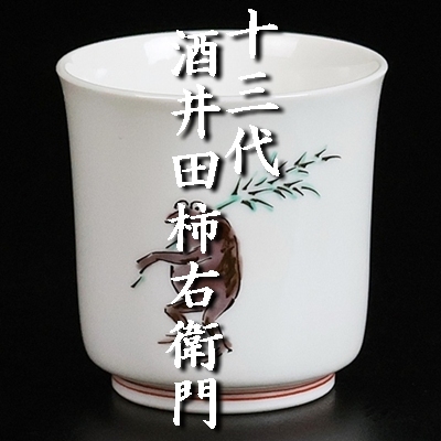 - 【 十三代酒井田柿右衛門 】秀逸作 濁手戯画ぐい呑 本物保証