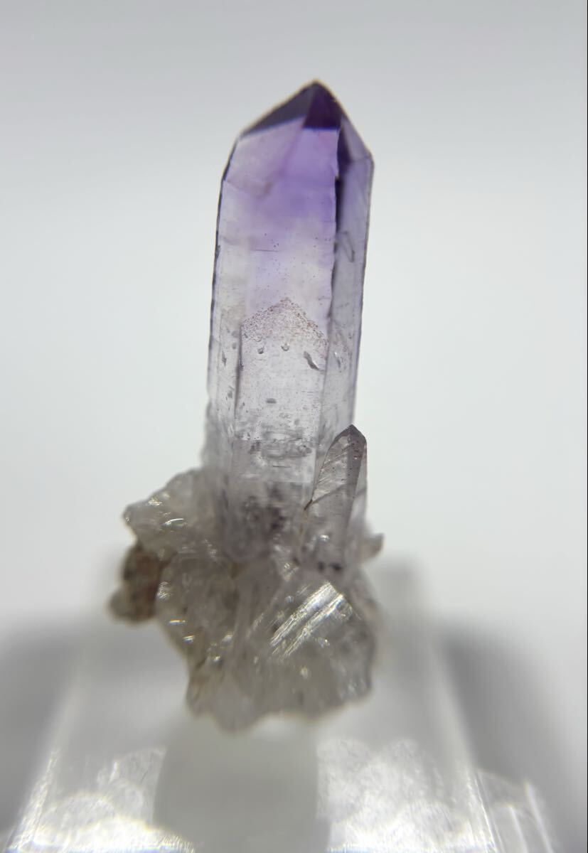 - 紫水晶 雨塚山 宮城県白石市 アメジスト 結晶 母岩付き 国産 鉱物 天然石 原石 標本 希少 宝石質 アクリル土台付き No.36