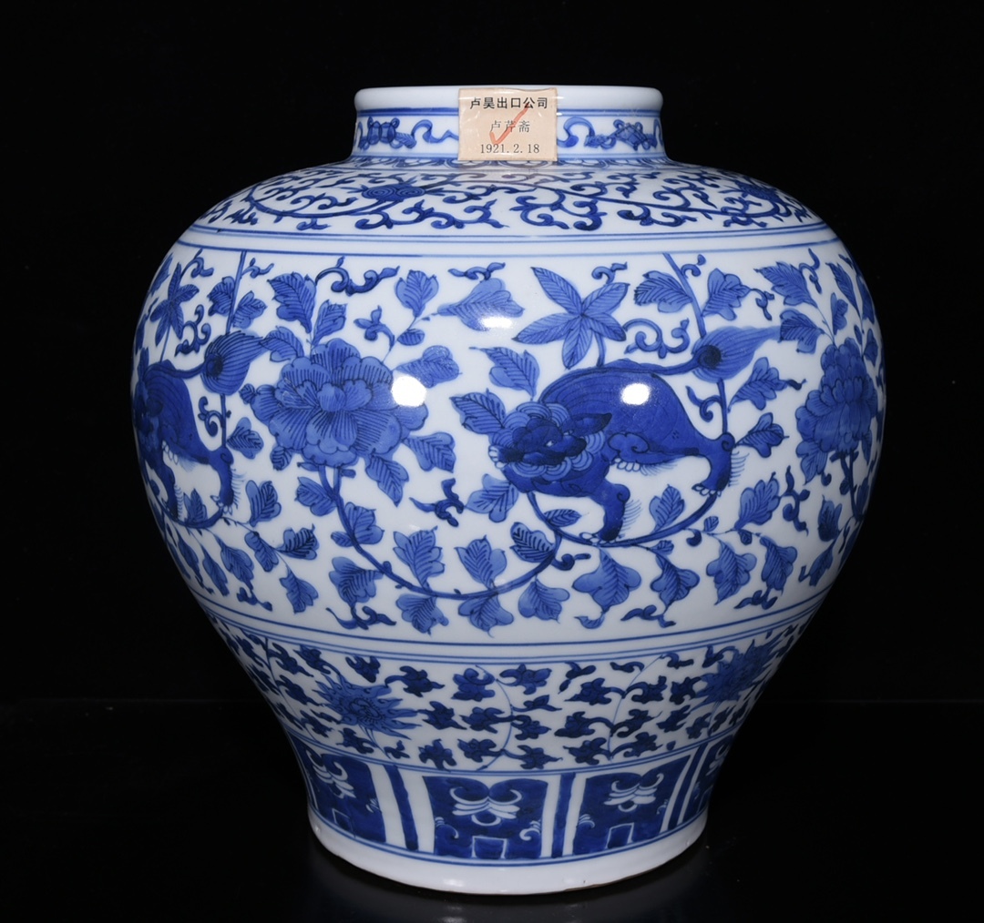 > ◆珍蔵◆中国古美術 大明嘉靖年製款 青花 古陶磁 吉祥富貴 古獸紋大罐 精品 細密細工造 置物 擺件 骨董品 古賞物 時代物 T08