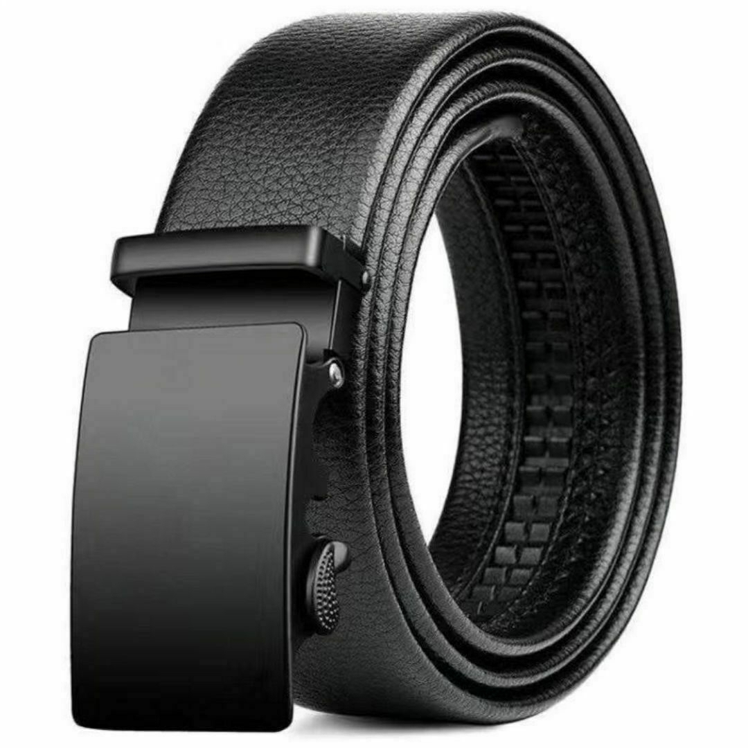 - オートロックベルト メンズ ビジネス スーツ カジュアル 学生 制服 自動バックル 穴なし PUレザー 調整不要 ブラック 黒