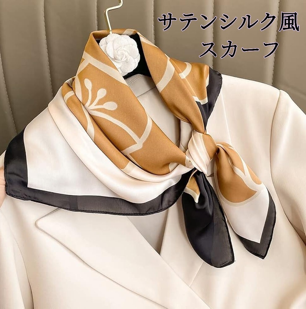 - スカーフ 大判スカーフ バンダナ サテンシルク風 フラワー 高級感 高品質 タイプ