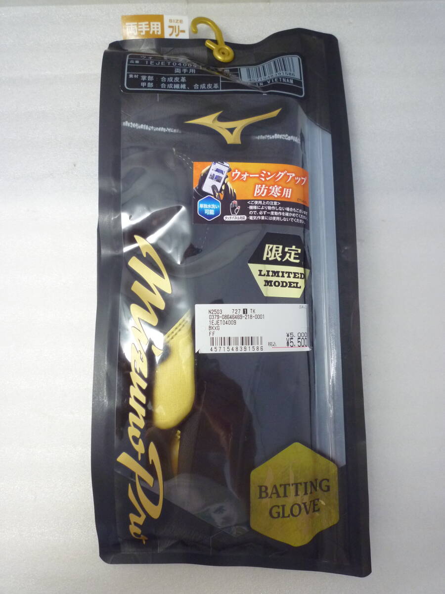 - 未使用 mizunoPro ミズノプロ バッティンググローブ 1EJET04009 ウォーミングアップ/防寒用 ブラック×ゴールド フリー 両手 合成皮革 野球