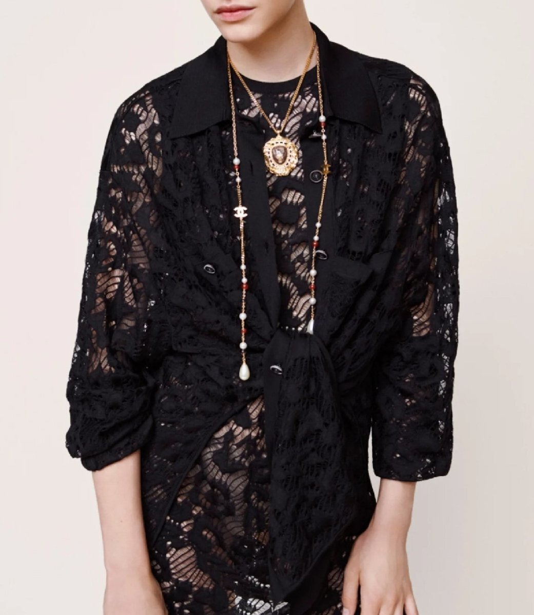 - シャネル CHANEL 22P カメリア 星 ココマーク レース ブラウス シャツ カーディガン 黒 ブラック Aランク I8102/T100/T79