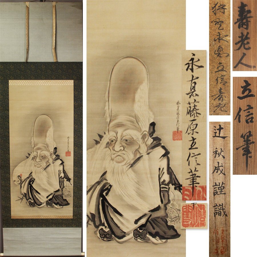 - 《源》【即決・送料無料】狩野永悳立信 筆「寿老人図」/二重識箱付