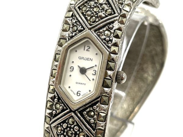 > 【X006】高級 ヴィンテージ グリュエン GRUEN 宝飾時計 ホワイト 3針 バングル ブレスレット ジュエリーウォッチ キラキラ クオーツ b