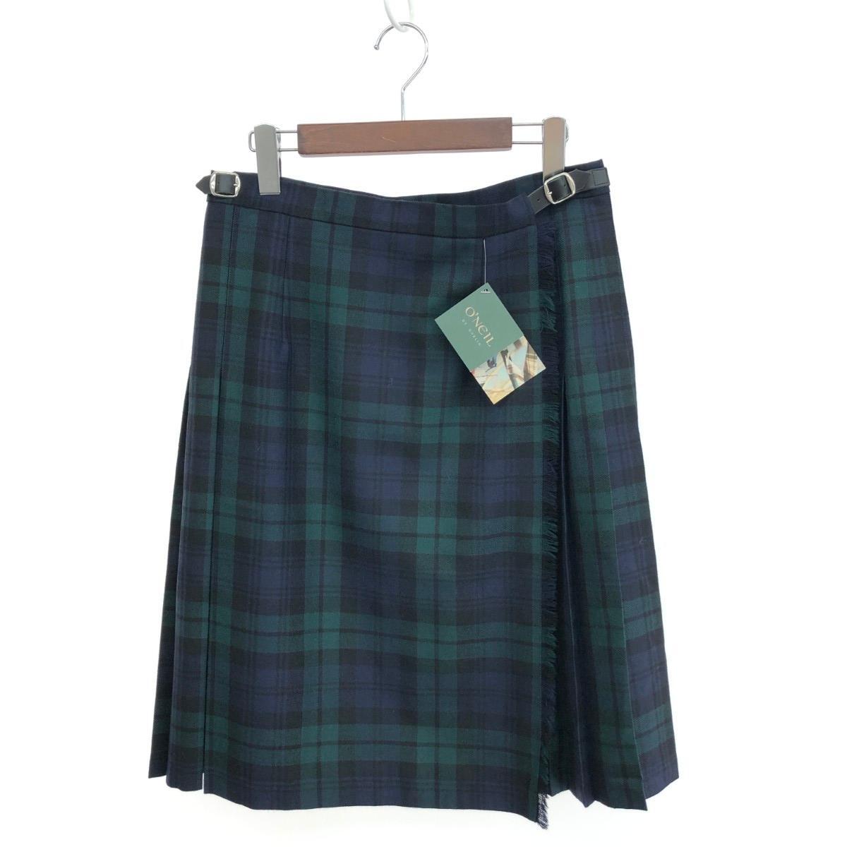 - 未使用品◆O'NEIL OF DUBLIN オニールオブダブリン ラップスカート サイズ:14 ベルトデザイン/チェック柄/プリーツ グリーン レディース