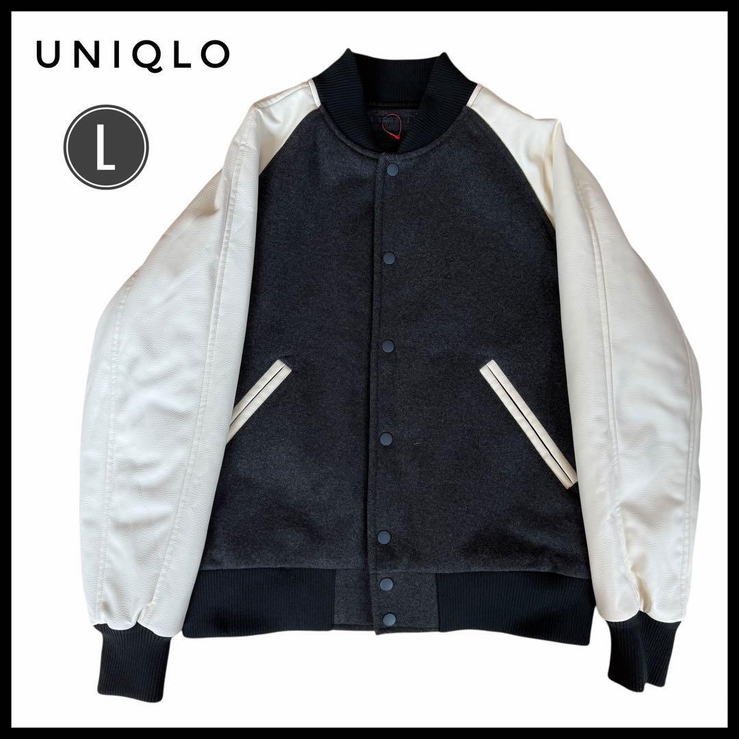 > UNIQLO ユニクロ スタジャン ダークグレイ Lサイズ ユニセックス ホワイト 冬 防寒 アウター 大きめ スタジアムジャンパー