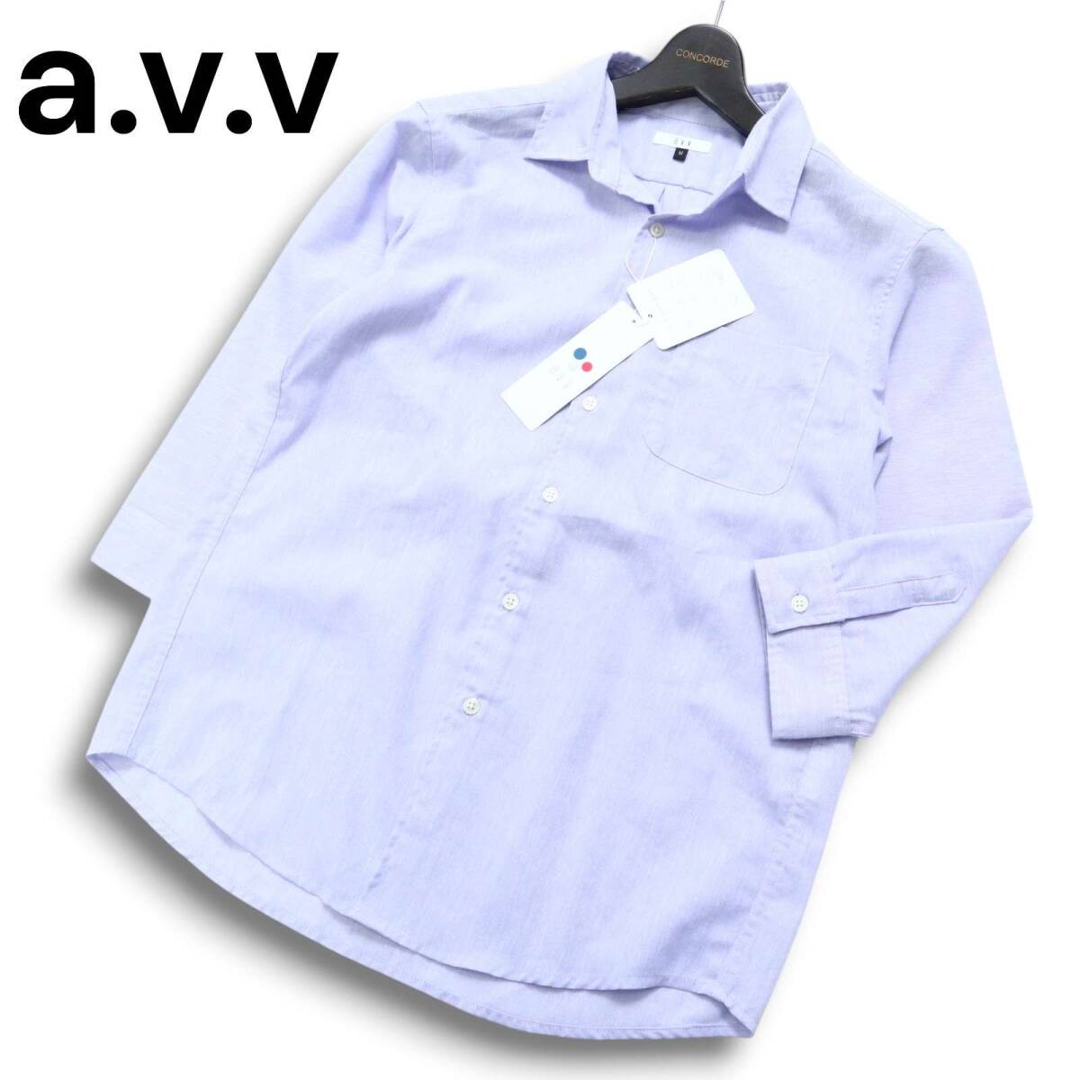 > 【新品 未使用】 a.v.v アーヴェヴェ さらリネ 麻 リネン混★ ストレッチ 接触冷感 7分袖 ボタンダウン シャツ Sz.M メンズ