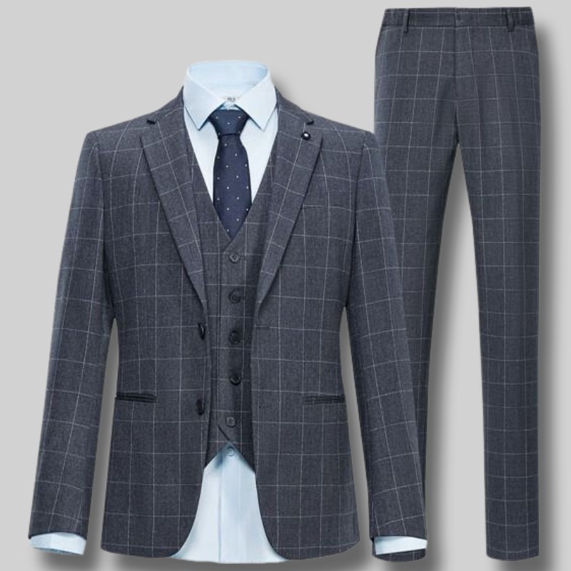 - Y6539-L 青灰 新品 セットアップスーツ ウール31% 格子柄 ベスト付きスーツ 3ピーススーツ ウエスト調節可能 フォーマル スラックス メンズ