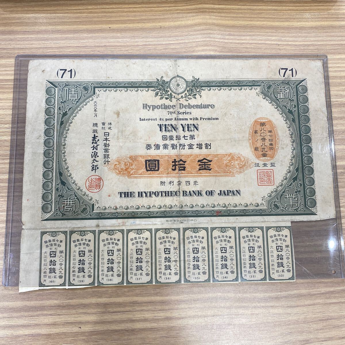 - 日本勧業銀行 特殊銀行 割増金附勧業債券 金拾圓 大正8年 1919年発行 コレクション