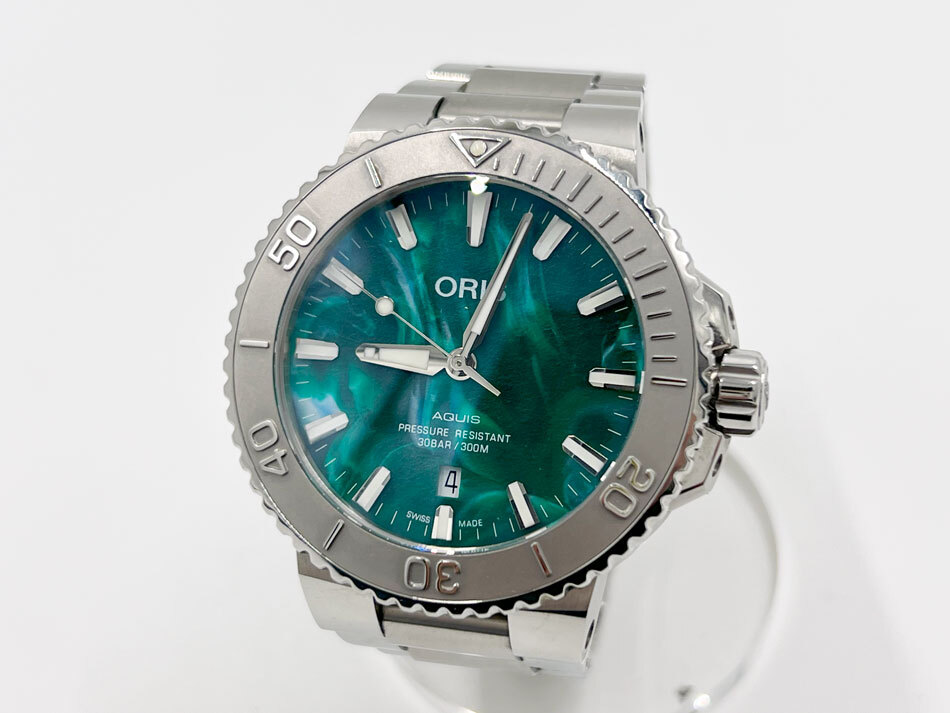 > ORIS × BRACENET オリス × ブレスネット AQUIS アクイスデイト メンズウォッチ 腕時計 自動巻き グリーン 01 733 7730 4137 美品