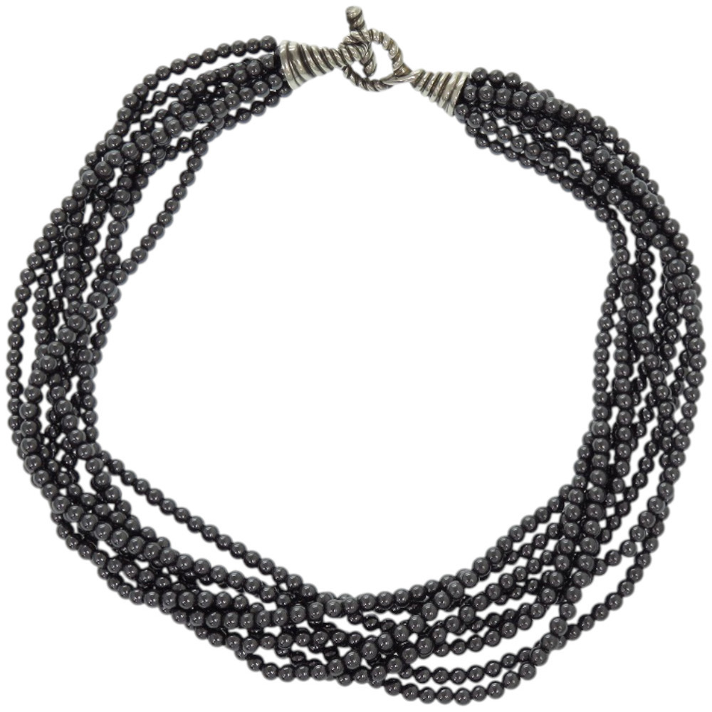 > 美品 ティファニー 8連 チョーカー ビーズ ヘマタイト シルバー925 シルバー ネックレス 0624 TIFFANY&Co.