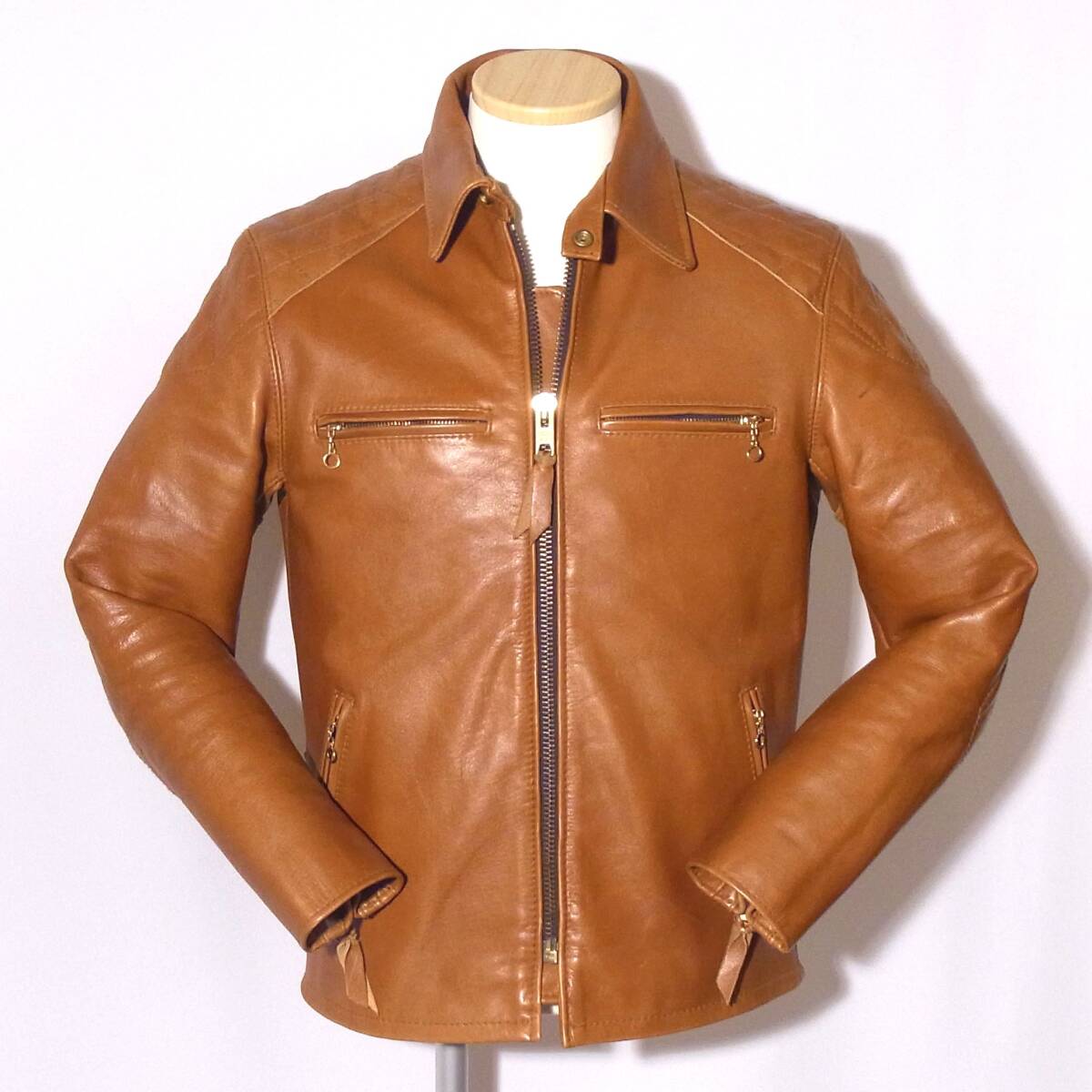 - 美品Schott【ショット/襟付シングルライダース3111005パテッドL】キャメル/⑩