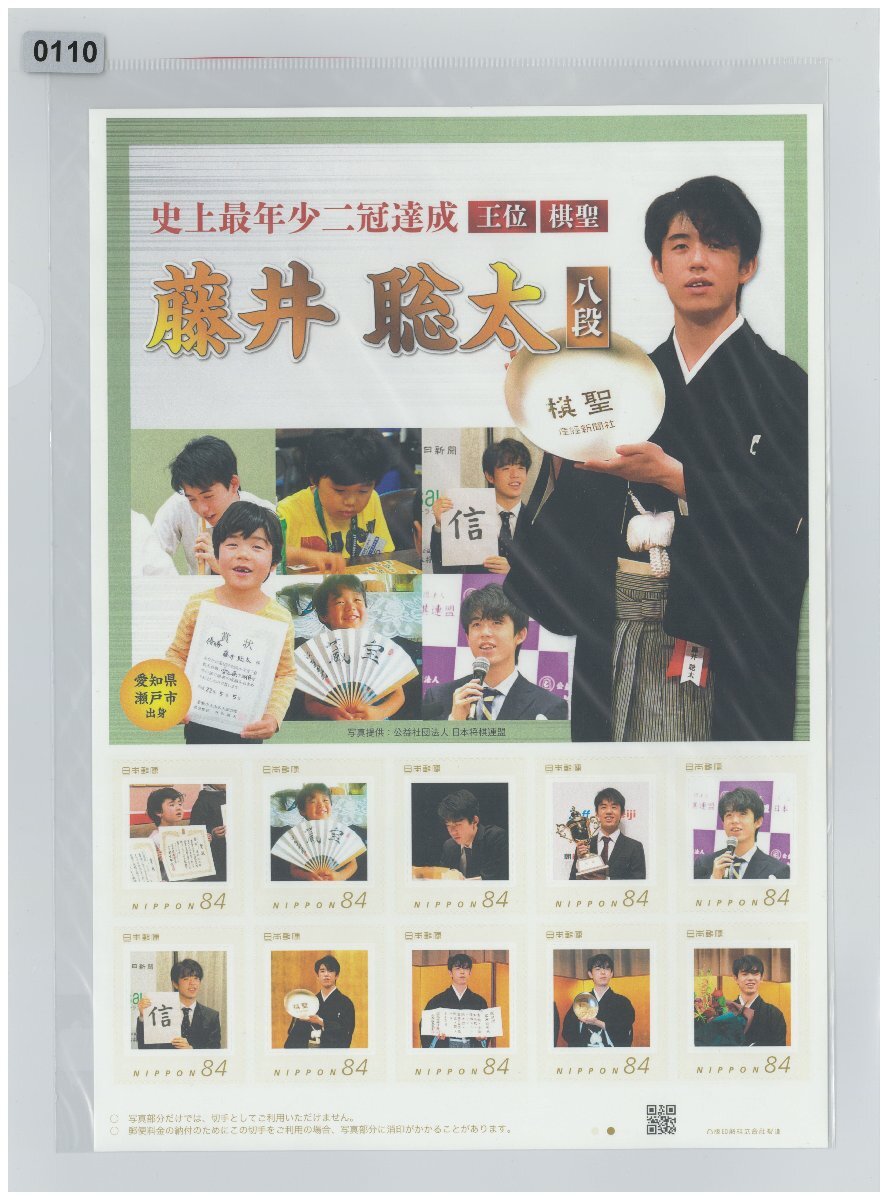 ●0110 フレーム切手 藤井聡太八段 史上最年少二冠達成 84円×10枚 シール・プレミアム記念切手 〒3